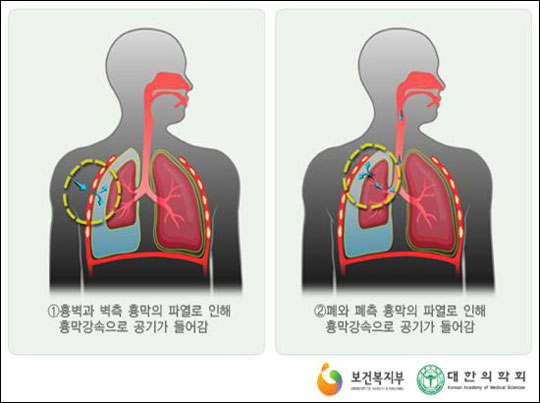 전문의들은 "기흉은 폐나 폐를 둘러싼 막에 구멍이 생겨 폐가 쭈그러드는 질환으로 호흡곤란과 가슴 통증 등이 동반된다"며 "폐에서 공기가 새는 정도가 심하거나 재발의 위험이 크면 수술을 받아야 한다"고 조언했다.